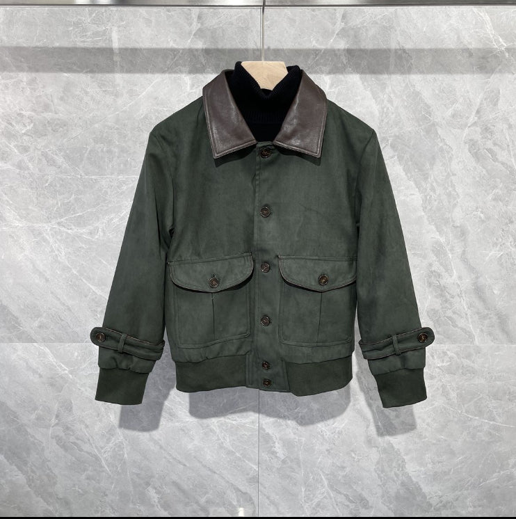 Retro Casual Men's Jacket With Leather Lapel