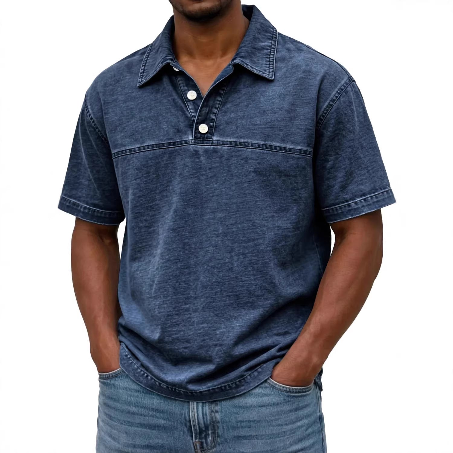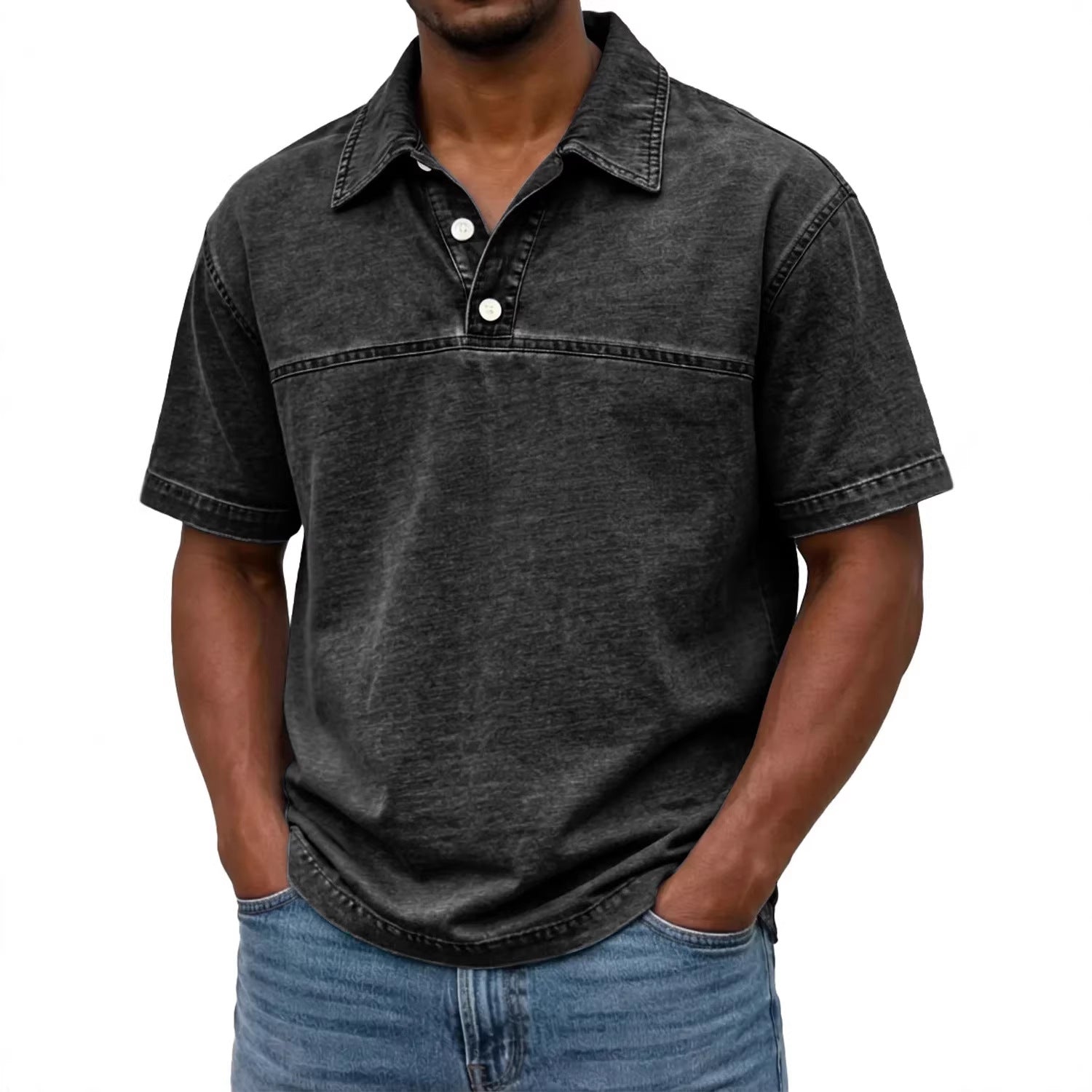 Mens Stylish Solid-color Vintage Short-sleeve Lapel Polo Shirt