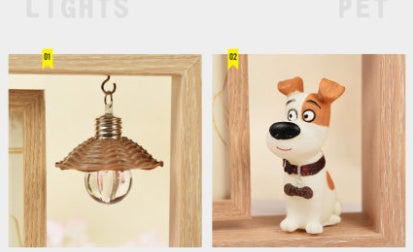 Swiveling dog photo frame -6 inches - Gift box - Water ball lamp + cat ornament *6
