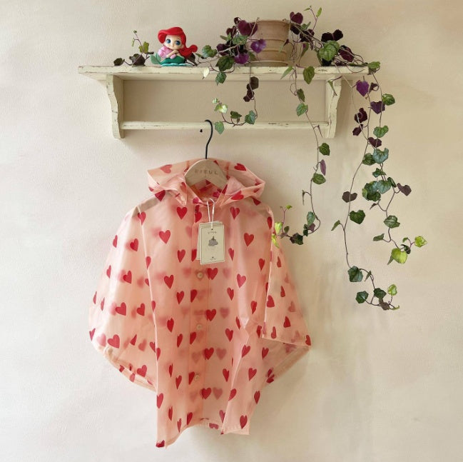Color: KS cat full print raincoat (white),KS Cherry full print raincoat (pink),KS lemon full print raincoat (beige),KS love Cape style raincoat (pink),KS love raincoat (pink)