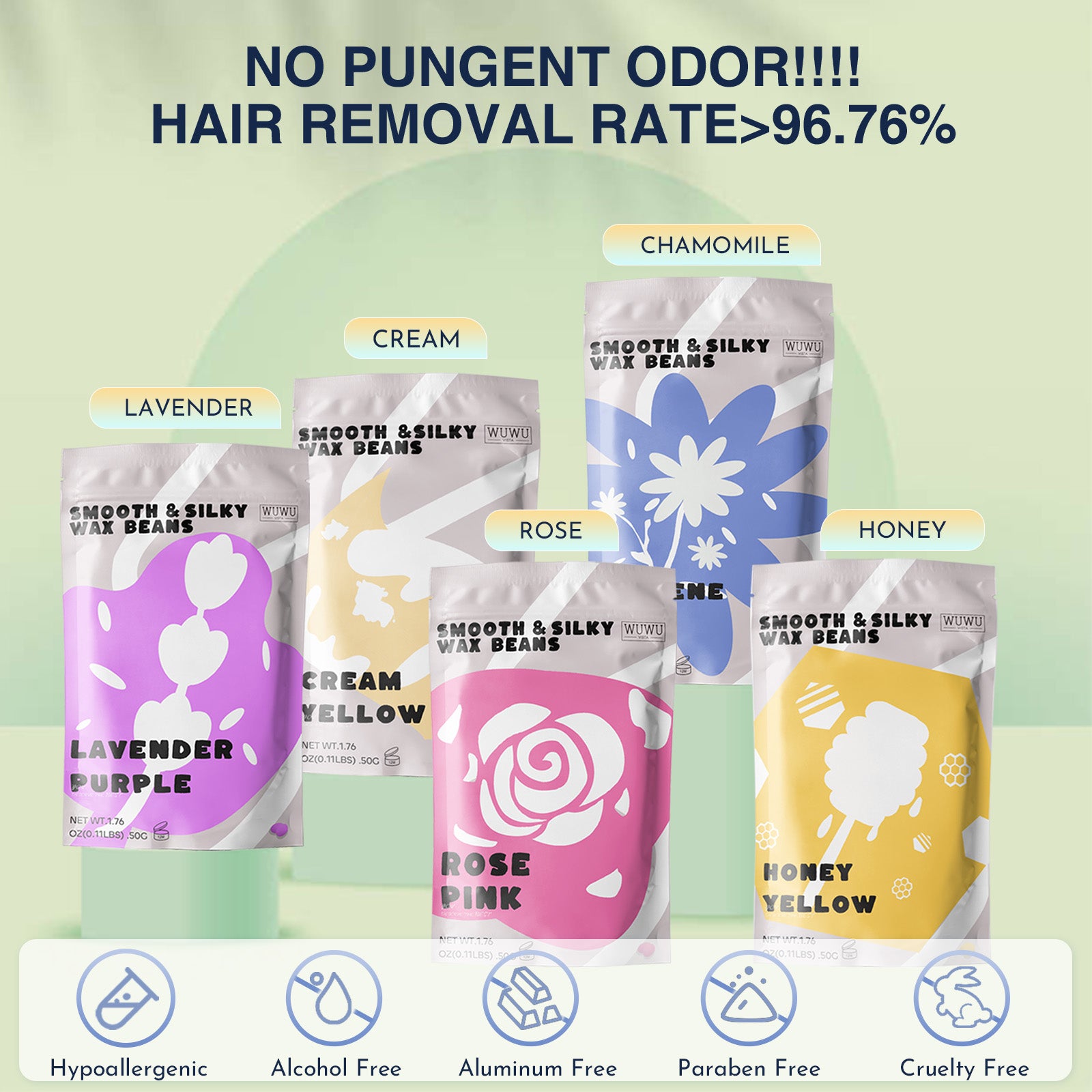 -irritating wax beans have a high hair removal rate and are perfect for all hair types & skin types.