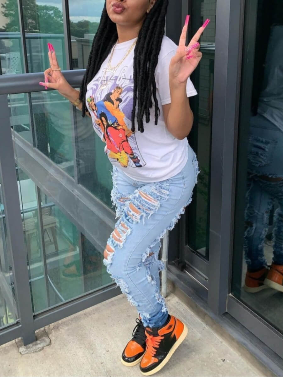 Women's Fashion Trend Ripped Stretch Jeans, Slim-fit Gradient Jeans, Suitable For All Kinds Of Wear, The Perfect Holiday Gift, Denim For Women
